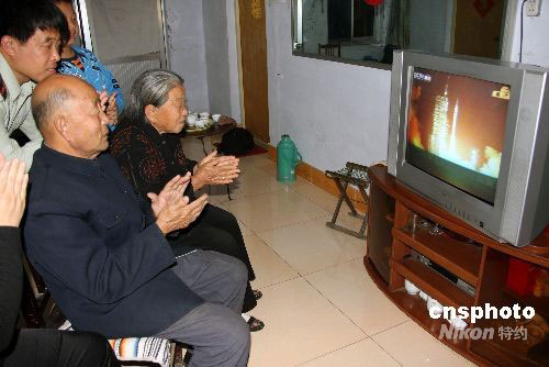 圖:中國航天專家觀看神舟七號飛船發(fā)射直播