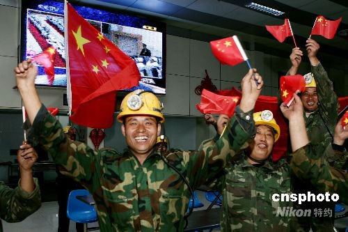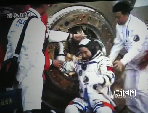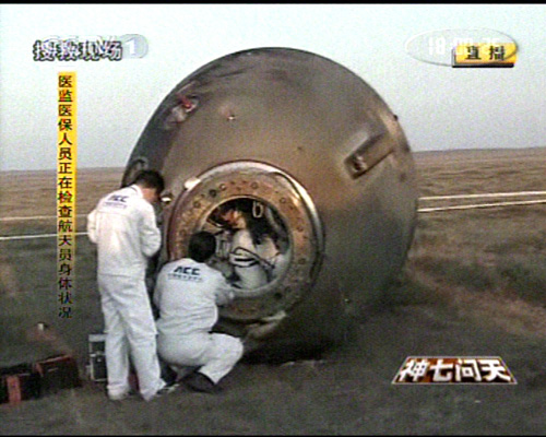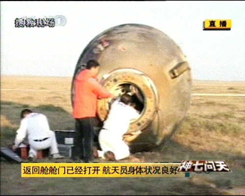 圖:神舟七號飛船返回艙艙門順利打開