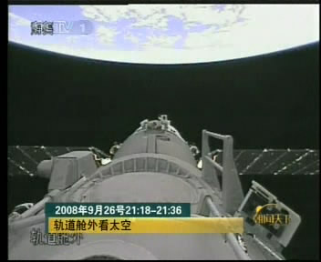 神舟七號艙外攝像機拍攝到太空日落壯觀景象