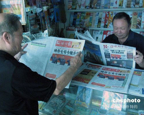 圖:福州市民關(guān)注“神七”飛船發(fā)射