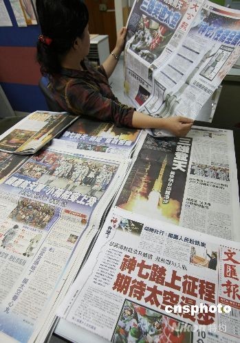 香港民眾關(guān)注“神七”航天員翟志剛漫步太空