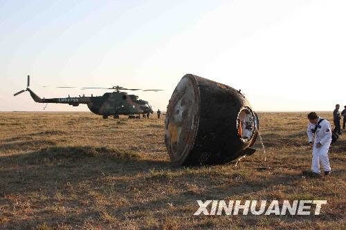 組圖:神舟七號飛船返回艙順利落地