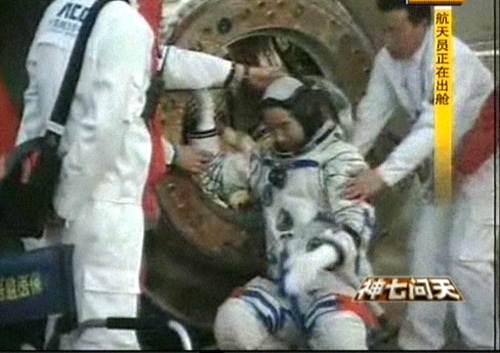 圖:中國人實現(xiàn)首次太空行走