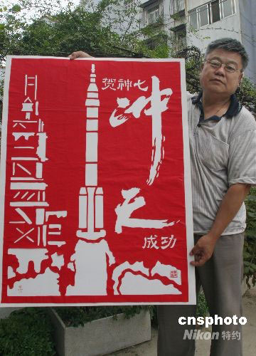 圖:剪紙賀“神七”飛天成功