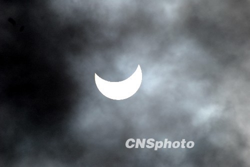 圖:“大日食”如約光臨重慶 當(dāng)?shù)厥忻衤N首觀看(2)