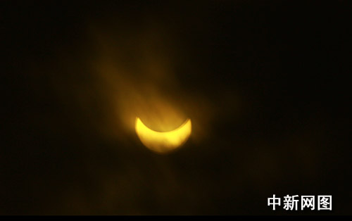 圖:日全食“食既” 重慶白晝?nèi)缫?/a>