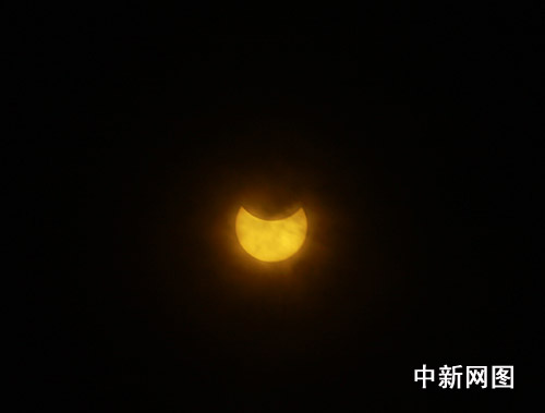 圖:“大日食”如約光臨重慶 當(dāng)?shù)厥忻衤N首觀看