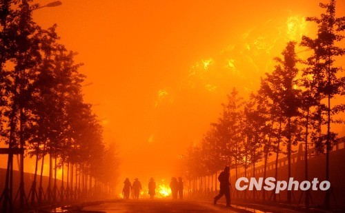 圖:大連新港輸油管道發(fā)生爆炸起火現(xiàn)場直擊(3)
