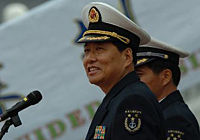 訪日?qǐng)F(tuán)指揮官肖新年檢閱日本海軍儀仗隊(duì)