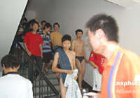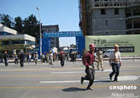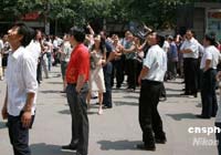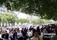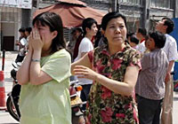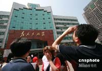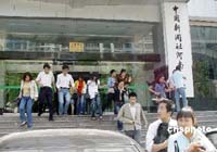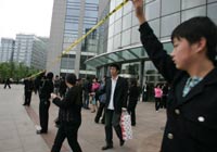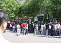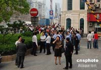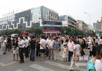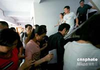 河南省會(huì)鄭州受到四川地震波及,該市豫博大廈樓內(nèi)跑出的民眾。