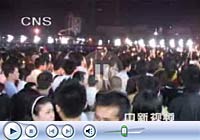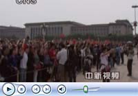 天安門廣場(chǎng)上群眾高呼“中國(guó)加油”