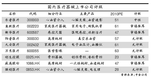 公司方面,主要推薦康輝醫(yī)療、創(chuàng)生控股、威高股份、魚躍醫(yī)療和新華醫(yī)療。同時關注心臟支架降價壓力明朗化之后樂普醫(yī)療的交易性機會。