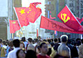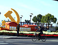 組圖:天安門廣場吊裝巨型標(biāo)語牌的新景觀