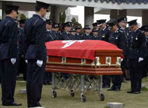 3日晚,香港紅磡世界殯儀館開始為九龍尖沙咀槍擊案殉職警員曾國恒設(shè)靈,香港特首曾蔭權(quán)及警務(wù)處長李明逵前往致祭。4日上午,香港特區(qū)立法會主席范徐麗泰、香港公務(wù)員事務(wù)局局長俞宗怡、保安局局長李少光、警務(wù)處處長李明逵等多位官員,以及來自各界的代表人士,出席了喪禮儀式。<全文>