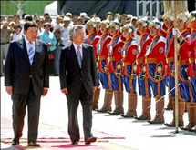 日本首相小泉純一郎8月10日上午乘專機出發(fā),直飛蒙古國首都烏蘭巴托,展開了他為期兩天的蒙古之行。分析人士認為,這次小泉謝幕之行出訪蒙古以金錢鋪路,重點看重蒙古豐富地下資源。日本外務(wù)省發(fā)言人表示,在訪問期間小泉將向蒙古許諾提供6億日元(約合520萬美元)援助....<全文>