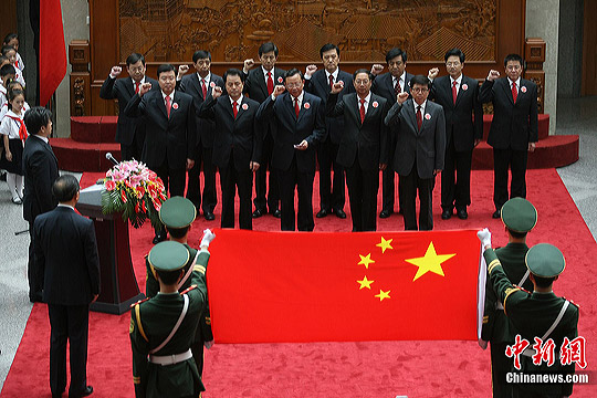 7月17日,在外交部橄欖廳,外交部長(zhǎng)楊潔篪勉勵(lì)玉樹震區(qū)小學(xué)生努力學(xué)習(xí)、重建家園。當(dāng)日,外交部舉辦第八次駐外使節(jié)任職宣誓儀式暨外交部“祖國(guó)在我心中”主題公眾開放日。來自北京、玉樹、黑龍江、重慶等地的小學(xué)生參加了此次活動(dòng)。中新社發(fā) 蘇丹 攝