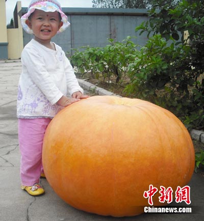 近日,山東省文登市劉家莊村鄒積泉老漢在果園收獲了一個67公斤重的巨型南瓜,令人們感到驚奇,引得周邊市民紛紛前來參觀。一些好奇的人對這一特大南瓜進(jìn)行測量,南瓜重67公斤,直徑約0.64米,高0.60米,周長約2米。