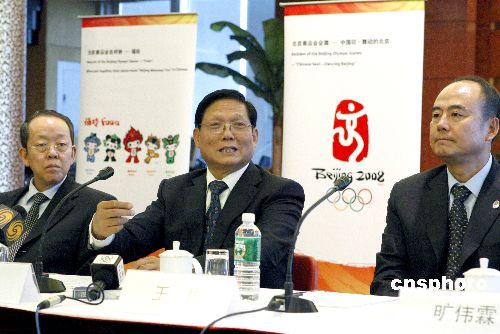 北京市委書(shū)記、北京奧組委主席劉淇十一月一日在紐約向記者介紹北京二00八年奧運(yùn)會(huì)籌備情況時(shí)表示,北京將履行在申辦奧運(yùn)會(huì)時(shí)做出的改善空氣質(zhì)量的承諾,會(huì)在奧運(yùn)會(huì)期間根據(jù)實(shí)際情況采取綜合措施,全力為各國(guó)運(yùn)動(dòng)員提供良好的競(jìng)賽環(huán)境。中新社發(fā) 李靜 攝