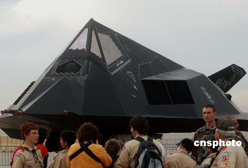 美國為紀(jì)念六十年前成立空軍,十一月在內(nèi)華達(dá)州的內(nèi)利斯空軍基地舉辦大規(guī)模飛機(jī)展示,民眾前來觀看世界上第一種可正式作戰(zhàn)的隱身戰(zhàn)斗機(jī)F-117A“夜鷹”,它專門用于夜間攻擊。中新社發(fā) 賈國榮 攝