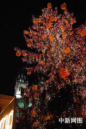 當(dāng)?shù)貢r間12月1日,捷克首都布拉格老場廣場舉行傳統(tǒng)的圣誕燈火亮燈和圣誕集市開張儀式。在大約12000名游客的歡呼聲中,布拉格市長貝姆啟動開關(guān),胡斯塑像旁邊22米高的圣誕樹由下到上開始放射出燦爛光芒。今年新增的矗立在集市四角的4座長著翅膀吹號的天使燈火塑像讓游客們特別感興趣。黃頻 攝