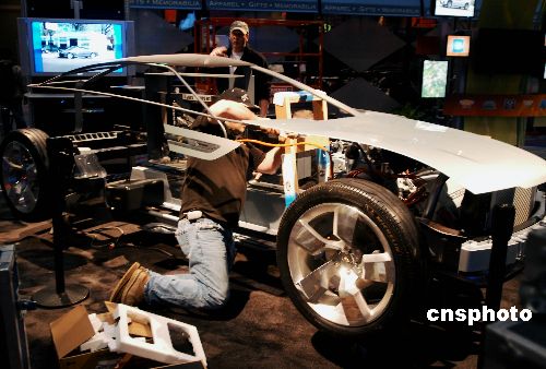 美國通用汽車一月六日在拉斯維加斯世界最大的消費(fèi)電子產(chǎn)品展上,展示環(huán)保型無排放汽車模型。中新社發(fā) 賈國榮 攝