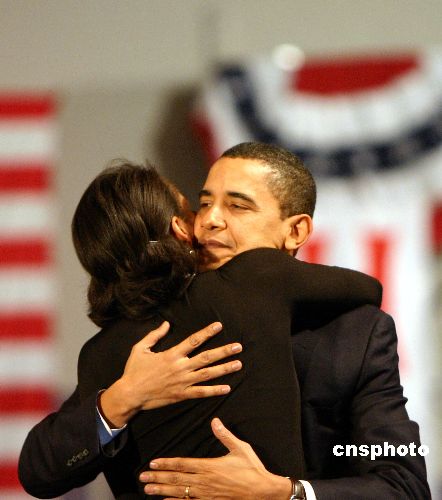當(dāng)?shù)貢r(shí)間一月八日,美國(guó)民主黨總統(tǒng)競(jìng)選人奧巴馬在新罕布什爾州民主黨初選敗給希拉里。中新社發(fā) 李靜 攝