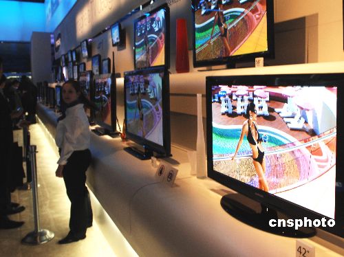 一月上旬,當今超薄型高清晰度彩色電視機在美國拉斯維加斯世界最大的消費電子產品展上傳達信息:它們將是裝飾墻壁的電子生活藝術品。中新社發(fā) 賈國榮 攝