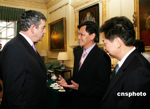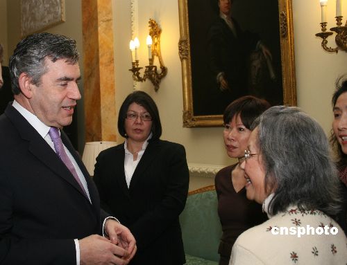 當?shù)貢r間1月14日下午,即將訪華的英國首相布朗在唐寧街十號會見旅英華人華僑、中資機構負責人、留學生等華人杰出代表。中新社發(fā) 李鵬 攝
