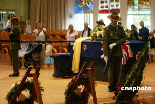 2008年1月21日,新西蘭奧克蘭市民冒雨前往位于市中心附近的Holy Trinity Cathedra,瞻仰希拉里爵士靈柩,以寄托哀思。新西蘭政府將于1月22日破格為埃德蒙·希拉里爵士舉行國(guó)葬。 1919年生于新西蘭的奧克蘭。他自幼喜歡登山和探險(xiǎn)活動(dòng),并在中學(xué)時(shí)開(kāi)始了登山探險(xiǎn)的實(shí)踐。1953年5月29日,34歲的埃德蒙·希拉里和同伴丹增一起,由珠穆朗瑪峰尼泊爾一側(cè)即南側(cè)攀登,第一次站在了世界之巔。除了攀登珠峰以外,埃德蒙·希拉里還登上了喜馬拉雅山脈的所有11座山峰,這些山峰全部在海拔6000米以上。中新社發(fā) 崔 萌 攝