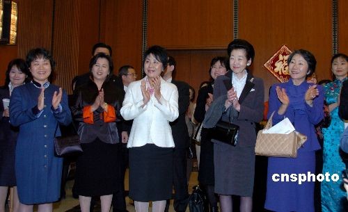 3月7日晚,中國駐日使館在東京舉行慶祝三八國際勞動?jì)D女節(jié)招待會,中國駐日大使崔天凱及夫人倪培君、日本首相夫人福田貴代子、少子化對策專任大臣上川陽子(女)等日本各界及華人華僑婦女代表近300人參加。中新社發(fā) 段躍中 攝