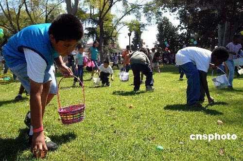 美國加州著名小城帕薩迪納的兒童3月22日在公園參加找尋“復(fù)活節(jié)彩蛋”活動,數(shù)百枚彩蛋在十幾秒鐘內(nèi)被一搶而空。西方復(fù)活節(jié)將至,洛杉磯地區(qū)許多社團(tuán)組織慶祝復(fù)活節(jié)活動,當(dāng)?shù)貎和M情享受節(jié)日帶來的快樂。 中新社發(fā) 張煒 攝