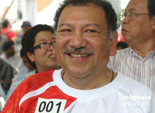 4月21日下午2時(shí),北京奧運(yùn)圣火在吉隆坡的點(diǎn)火起跑儀式在獨(dú)立廣場舉行。北京奧運(yùn)圣火在吉隆坡的傳遞以“從古老到現(xiàn)代”為主題,從獨(dú)立廣場出發(fā)后,途徑市政廳、國家議會(huì)、國家博物館、國家清真寺、獨(dú)立體育場、吉隆坡電視塔,最終將于傍晚6時(shí)在國營石油公司雙峰塔舉行慶典儀式。整個(gè)傳遞路線約為16里,歷時(shí)4個(gè)小時(shí)。圖為第一棒火炬手、馬來西亞奧委會(huì)主席東姑伊姆拉在等待啟程。作者: 沈晨