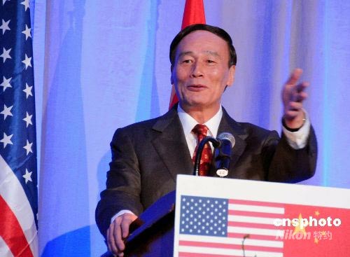 華盛頓當(dāng)?shù)貢r間六月十八日晚,中國國家主席胡錦濤的特別代表、國務(wù)院副總理王岐山,在與美國政商界的晚宴上發(fā)表四十分鐘的即席脫稿演講,他高瞻遠(yuǎn)矚、睿智幽默、形象生動的演講讓與會者折服。中新社發(fā) 邱江波 攝
