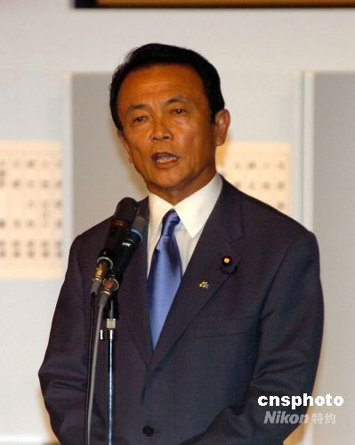 圖為當選的麻生太郎在選舉現(xiàn)場發(fā)表演說。