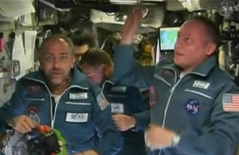 經過兩天飛行,搭載美俄兩名宇航員和世界第六位太空游客的俄羅斯“聯盟TMA-13”載人飛船14日與國際空間站成功對接。 美國國家航空和航天局發(fā)布的這張照片顯示,10月14日,世界第六位太空游客、美國電腦游戲開發(fā)商理查德·加里奧特(左)和美國宇航員邁克·芬克到達國際太空站。