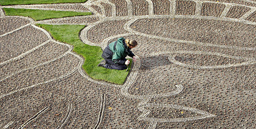 10月16日,在荷蘭利瑟著名的郁金香花園--庫肯霍夫公園,一名園丁用花球莖拼出自由女神像的圖形。這個自由女神像的拼接共使用了36000個花球莖,以此來慶祝荷蘭和紐約建立友好關(guān)系400年。