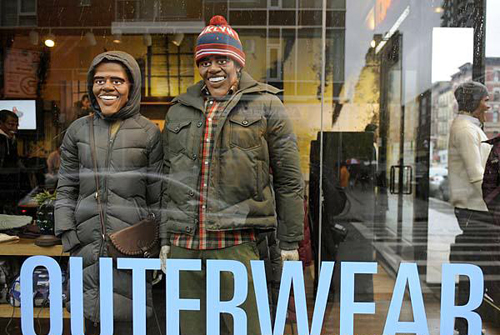 10月28日,在美國紐約的一家服裝店里,做成美國民主黨總統(tǒng)候選人奧巴馬模樣的模特身著冬裝,笑迎顧客。美國總統(tǒng)選戰(zhàn)如火如荼,商家們想出此絕活招攬顧客,成為一景。