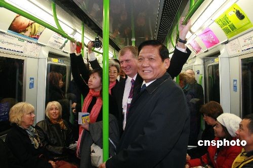 當(dāng)?shù)貢r間28日上午,中共中央政治局委員、北京市委書記、北京奧組委主席劉淇在倫敦地鐵公司參觀考察。中新社發(fā) 李鵬 攝