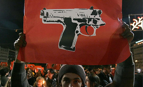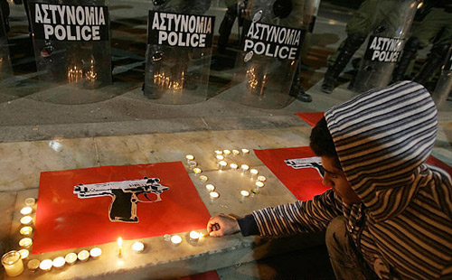 12月9日,在希臘雅典,民眾舉行和平集會,抗議警察打死15歲的少年格里戈羅普洛斯。格里戈羅普洛斯的葬禮當天在雅典郊外舉行。12月6日晚,這名少年在沖突中被警察開槍打死,由此引發(fā)希臘全國主要城市多日騷亂。