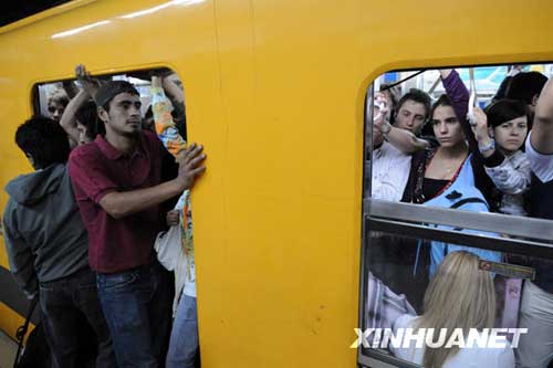 由于阿根廷首都布宜諾斯艾利斯地鐵部分員工當天舉行罷工,導致地鐵運營車次驟減,列車誤點現象嚴重,車廂內人滿為患。地鐵系統(tǒng)無法正常運轉還導致地面交通流量大增,整個城市交通陷入一片混亂。馬丁·薩巴拉 攝