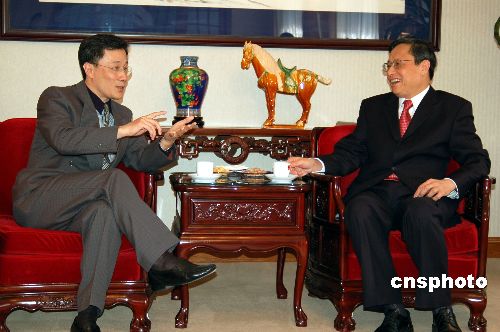 中國駐美大使周文重最近接受美西《僑報》總裁謝一寧專訪,指出中美關系30年取得的進步超過了任何人的想象。中新社發(fā) 李珍玉 攝