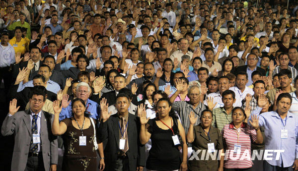 1月14日,尼加拉瓜全國(guó)109名當(dāng)選市長(zhǎng)和數(shù)百名副市長(zhǎng)及市政議員在馬那瓜市的革命廣場(chǎng)舉行集體宣誓就職儀式。塞薩爾·佩雷斯攝