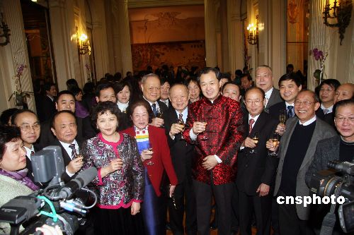 中國駐法大使孔泉十九日晚上在巴黎舉行迎新春招待會(huì),和近兩百位僑胞代表共同慶賀中國傳統(tǒng)佳節(jié)——春節(jié)的到來。中新社發(fā) 吳衛(wèi)中 攝