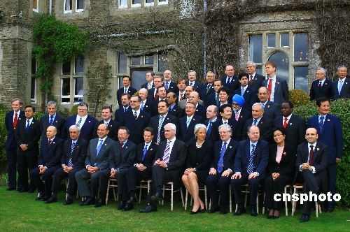 當(dāng)?shù)貢r(shí)間3月14日,二十國集團(tuán)財(cái)長和央行行長會在英國南部的霍舍姆區(qū)召開。圖為財(cái)經(jīng)高官們在會議間歇拍“全家!。中新社發(fā) 李鵬 攝
