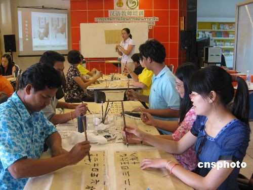 30幾位泰國(guó)孔敬府的中小學(xué)漢語(yǔ)教師4月10日結(jié)束了為期兩周的漢語(yǔ)教師班培訓(xùn)。受訓(xùn)老師們希望孔子學(xué)院能夠常常舉辦這樣的培訓(xùn),希望培訓(xùn)時(shí)間更長(zhǎng),讓他們有更多機(jī)會(huì)提高漢語(yǔ)水平、更多地了解中國(guó)文化、更好地提高自己的漢語(yǔ)教學(xué)水平和技巧。中新社發(fā) 顧時(shí)宏 攝