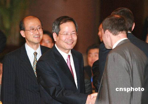 九月二十七日,朝核問題第六輪六方會(huì)談第二階段會(huì)議在北京釣魚臺(tái)國賓館開幕。圖為韓國代表團(tuán)團(tuán)長千英宇參加會(huì)議開幕。中新社發(fā) 廖文靜 攝