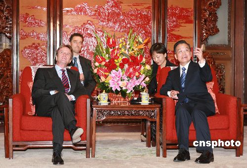 十月三十一日,中國(guó)國(guó)務(wù)院總理溫家寶在北京會(huì)見(jiàn)法國(guó)外交部部長(zhǎng)貝爾納·庫(kù)什內(nèi)。中新社發(fā) 廖文靜 攝