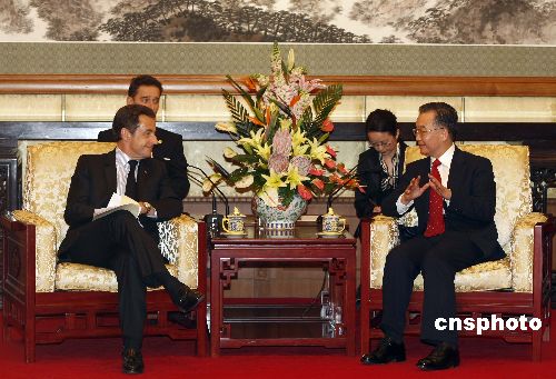 十一月二十六日,中國國務(wù)院總理溫家寶在北京釣魚臺(tái)國賓館會(huì)見來訪的法國總統(tǒng)薩科奇。中新社發(fā) 盛佳鵬 攝