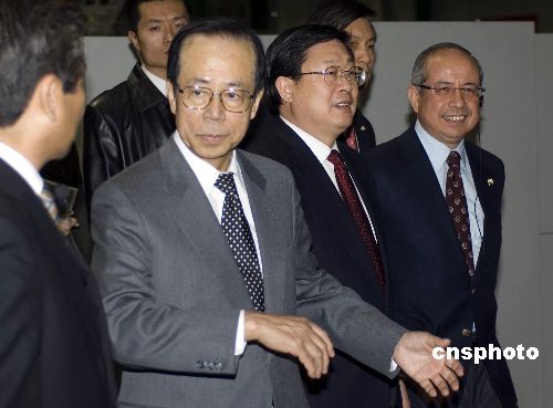 應邀訪華的日本首相福田康夫(左二)在天津市代理市長黃興國(右二)的陪同下,前往位于天津濱海新區(qū)的天津一汽豐田有限公司參觀訪問。