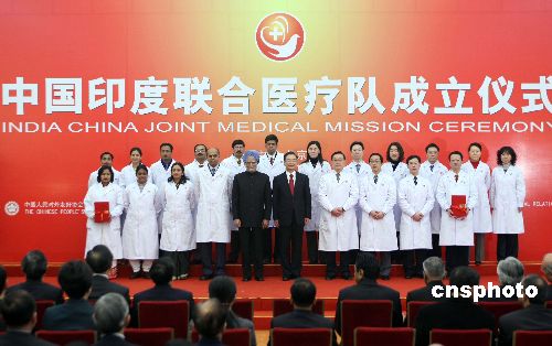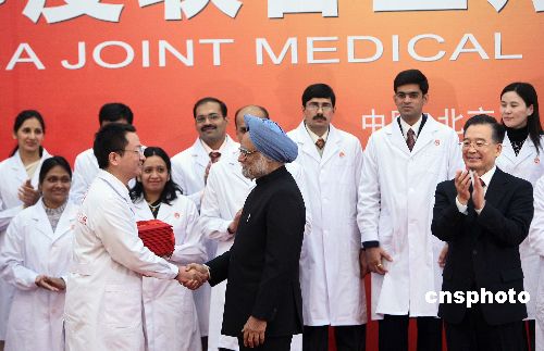 溫家寶與辛格出席中印聯(lián)合醫(yī)療隊(duì)成立儀式